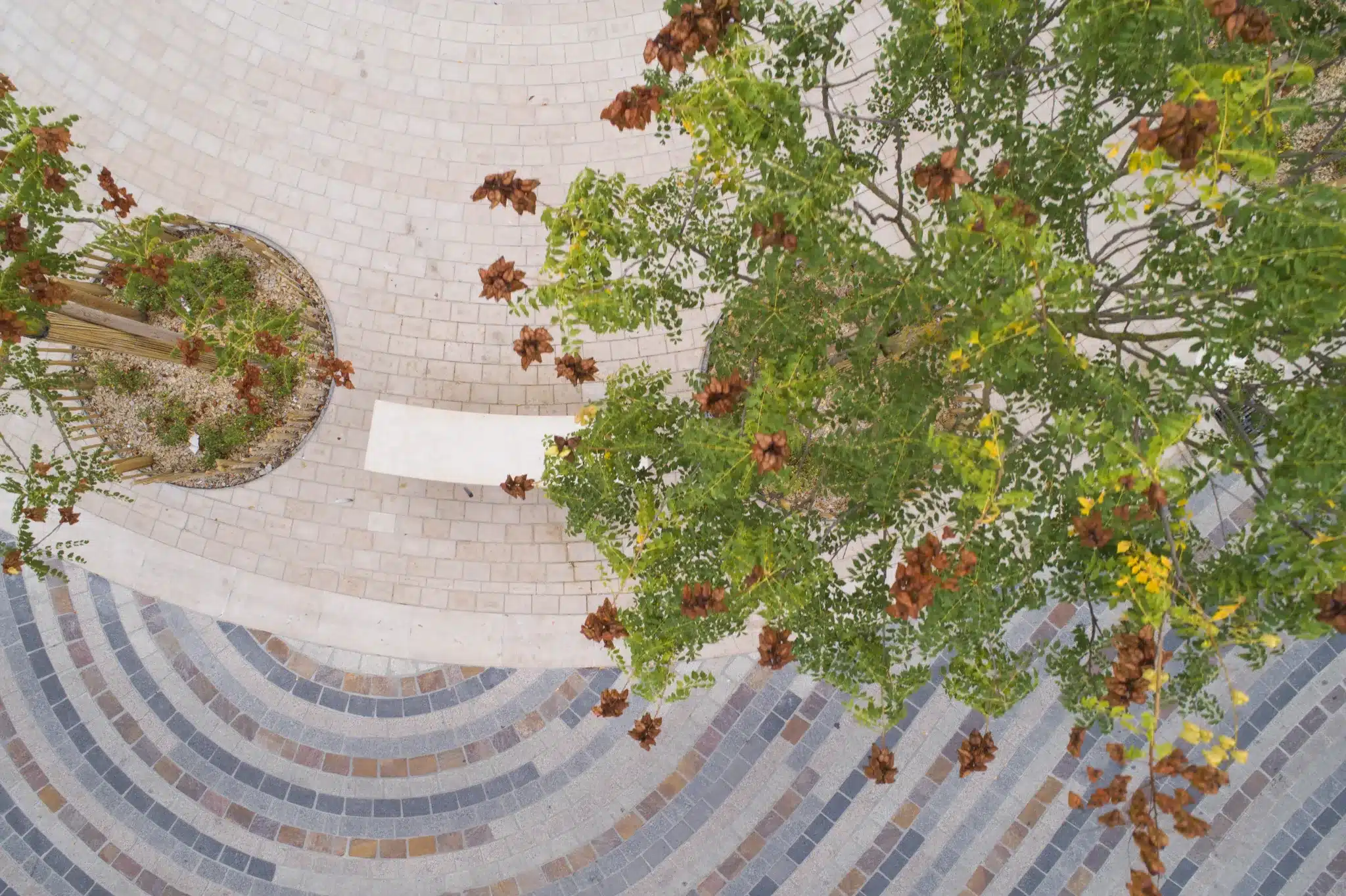 Nous défendons une approche engagée du paysage, intégrant la désimperméabilisation des sols, la gestion des eaux pluviales, le réemploi des matériaux et la mise en valeur du cadre existant.